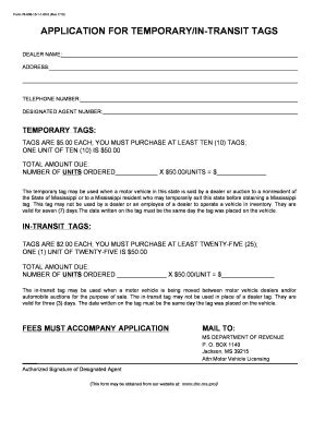 Download APPLICATION FOR TEMPORARY IN TRANSIT TAGS Hardcover